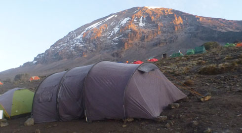 Today the trek up to the Barafu ridge campsite is difficult because of altitude. The walk take few hours because of short distance but is steep which required a slow pace to avoid fatigue. You will walk across an alpine desert with strong, cold winds blowing down from Kibo peak and its glaciers. You will have an early dinner at the elevation of 4620 meters then rest until midnight.