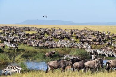 The Great Wildebeest Migration is the annual movement of millions of wildebeest and zebras. It occurs year-round, but the best time to see it in the Serengeti is from late June to early August.